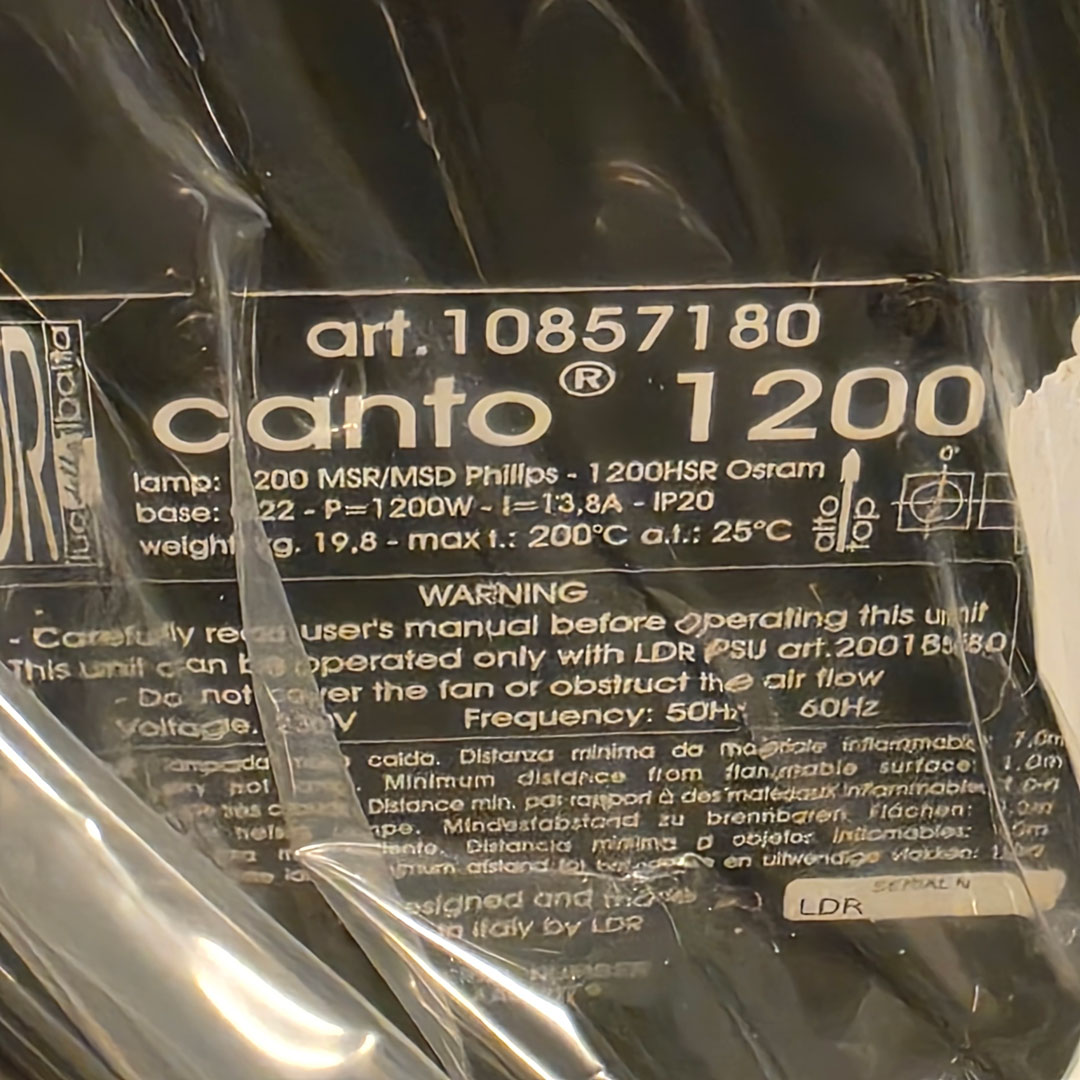 Canto 1200W MSR/MSD to najpopularniejszy model w serii. Świeci plamą o wyrównanej projekcji, o wyrazistych krawędziach, dzięki czemu jest znakomity do średnich i większych scen. Reflektor ma dużą, wygodną poręcz do kierowania, solidną konstrukcję mechaniki, oraz znakomitą optykę. Zestaw zawiera 20-to listkową przesłonę irys, dimmer mechaniczny, trzpień, oraz wydzielony statecznik elektromagnetyczny.